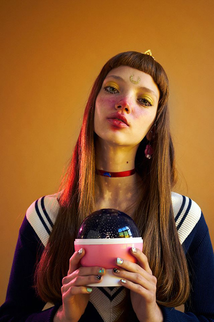 Pero, sobre todo, esta sesión es pura maravilla porque no podría ser más pertinente aquí y ahora, ya que “Sailor Moon” ha sido una de las series que la generación Tumblr ha abrazado con mayor fervor a la hora de construir su propio imaginario. Llámalo vaporware. Llámalo como te dé la gana. Pero lo que es indudable es que Berta Pfirsich la ha clavado a la hora de situar la nueva colección de Kling en un mundo repleto de sailors, gatetes, lazos, gargantúas, colores vivos y transformaciones mágicas. Qué bien sienta una barra libre de melancolía generacional, ¿verdad?