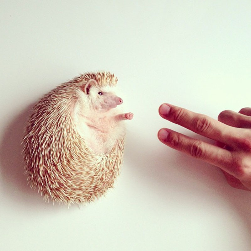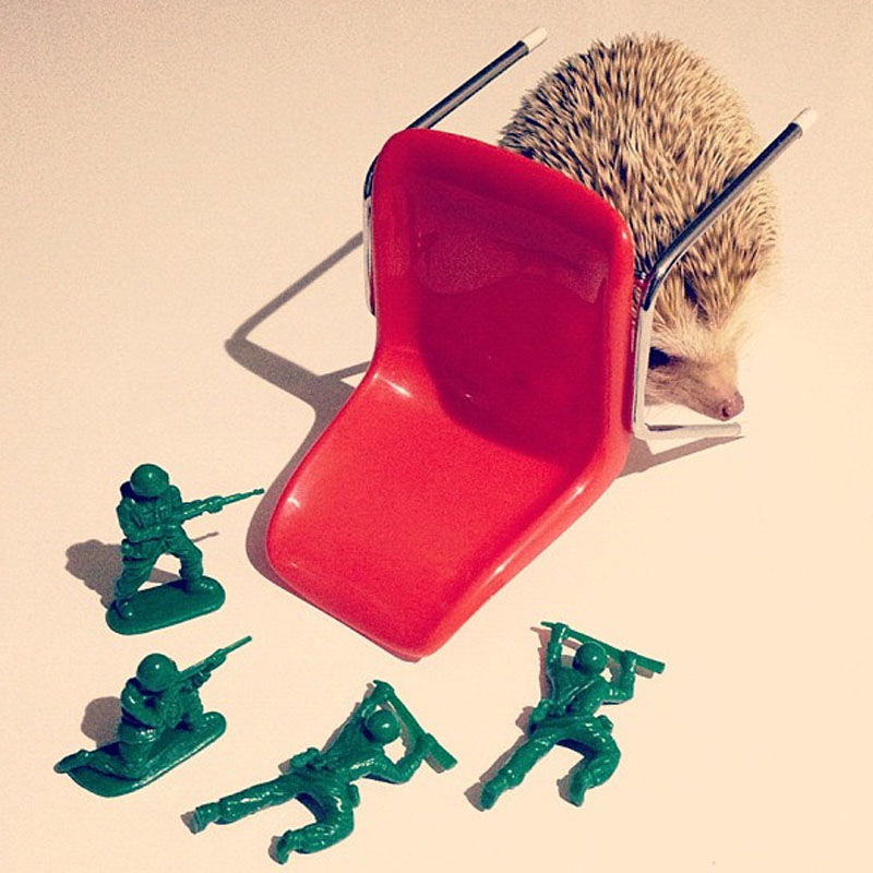 DARCY THE FLYING HEDGEHOG. Los erizos tienen muy mala fama. La naturaleza fue cruel al darle a un animalico tan mono un lugar en el mundo tan díficil y que, para ello, tenga que pasearse por la vida cargando con la armadura. Pero detrás de las espinas de cada erizo siempre hay un bicho monísimo, de esos que provocan bizqueo y parálisis mentales durante minutos. Los erizos son animales domésticos un poco exóticos, no es el típico bicho al que puedas acariciar cuando te de la gana (tiene que estar muy relajado y confiado para que ponga sus espinas en posición de descanso y, aún así, nunca acariciarás algo agradable sino una superficie muy parecida al papel de lija). Pero, de cualquier manera, ¿quién puede resistirse a una monería que cabe en la palma de la mano? ¿Y si es albina? ¿Y SI ADEMÁS POSA? Darcy es, posiblemente, la eriza más monérrima de la red. Su pachorrismo, esa cara de estar medio alelada a todas horas y, sobre todo, su habilidad para ponerse delante de la cámara y posar en los cien gadgets que tiene su propietario preparados para la ocasión, la convierten la fábrica de babas perfectas. ¿A qué ahora miráis a los erizos con ojitos más tiernos? ¡Claro! (con voz de Maricarmen de “¿QQCCMH?“).