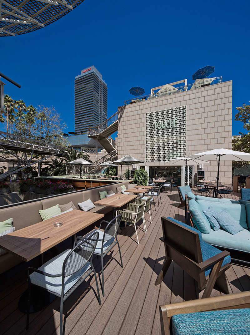 Pero aquí sumamos otro problema: la parte inferior del Hotel Arts es una maravilla que, sin embargo, no ha sabido ser aprovechada para atraer a la gente de la propia ciudad. Hasta ahora, claro, porque Touché acaba de abrir sus puertas justo en este lugar (específicamente en pleno Marina Village, en el número 19-21 de Calle Marina) y hay que reconocer que, ya sólo por el propio espacio, merece una visita. A saber: Touché se encuentra en esa especie de patio interior que queda entre el paseo marítimo y el Hotel Arts.